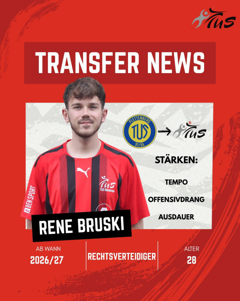 Tim Lüdke und Dennis Bonevski, unsere sportlichen Leiter Senioren, geben aktuell bekannt, dass sie zwei Neuzugänge für die nächste Saison für Neuenrade begeistern konnten. Mit den Beiden stoßen zwei starke Kräfte, mit Rene sogar ein alter Neuenrader Spieler zu unserer 1. Mannschaft und werden diese weiter stärken. Wir freuen uns darüber und stellen sie hier kurz vor.
